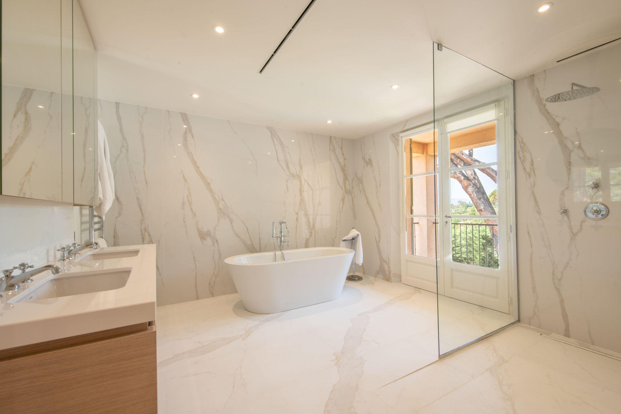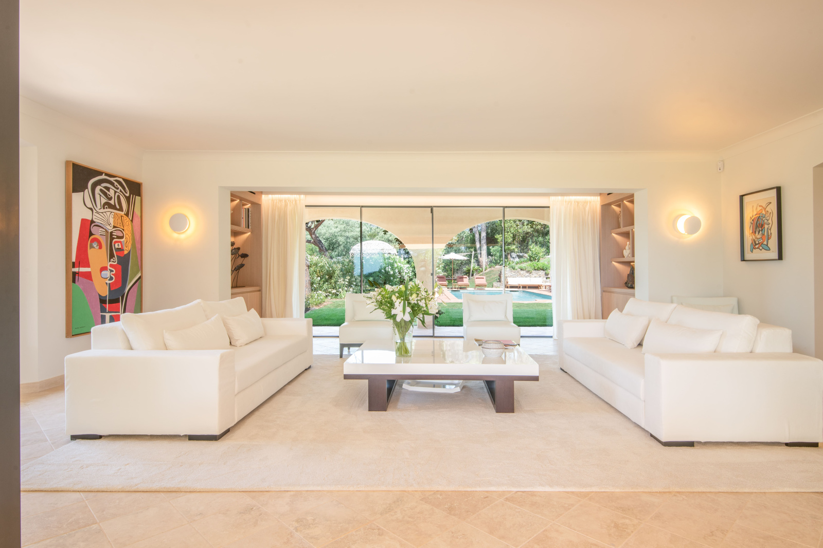 Cette magnifique propriété se compose d'un splendide séjour de 55m2, d'une cuisine entièrement équipée avec des appareils haut de gamme tels que les fours Gaggenau à vapeur et traditionnel, un frigo Subzéro ainsi qu'un piano de cuisine La Cornue. Une salle à manger séparée donne sur la vue mer. La villa comprend 5 chambres avec leurs propres salles de bains en suite, 3 d'elle bénéficie d'une vue mer.
