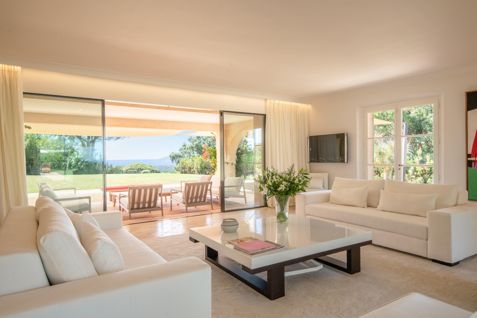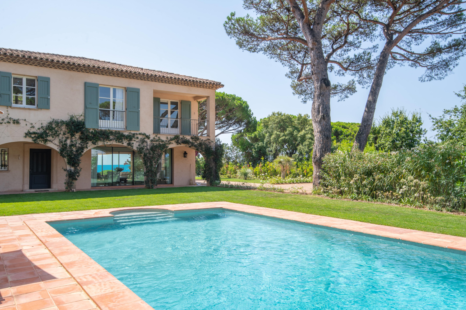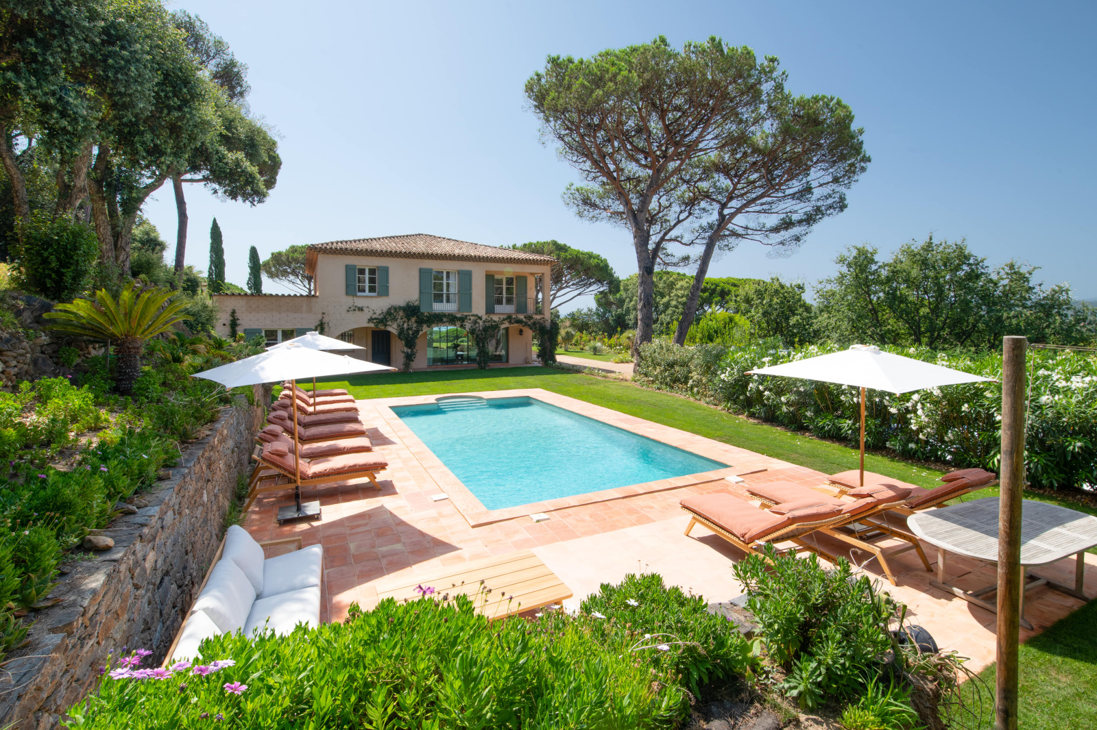 Superbe villa provençale d'environ 300m2 offrant une vue mer époustouflante, dans un quartier privilégié idéalement située à proximité immédiate des plages et du centre ville de St-Tropez.