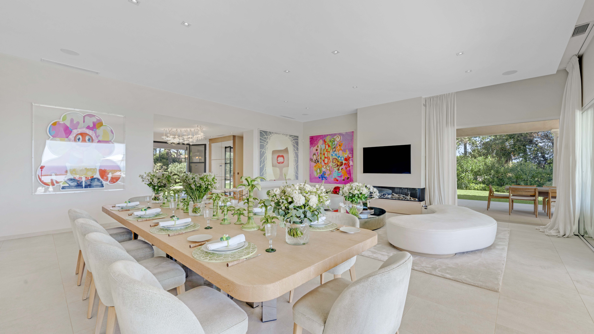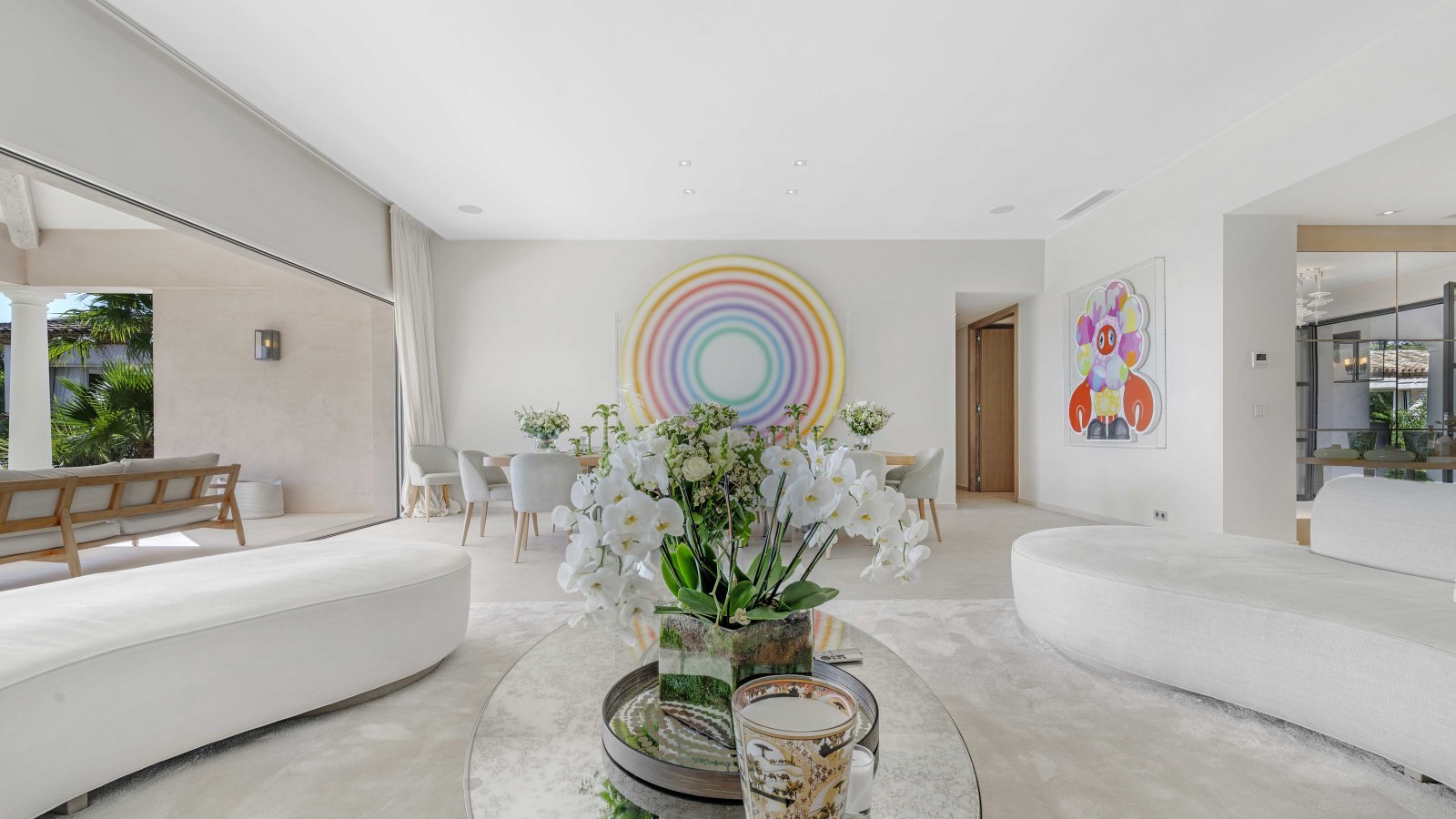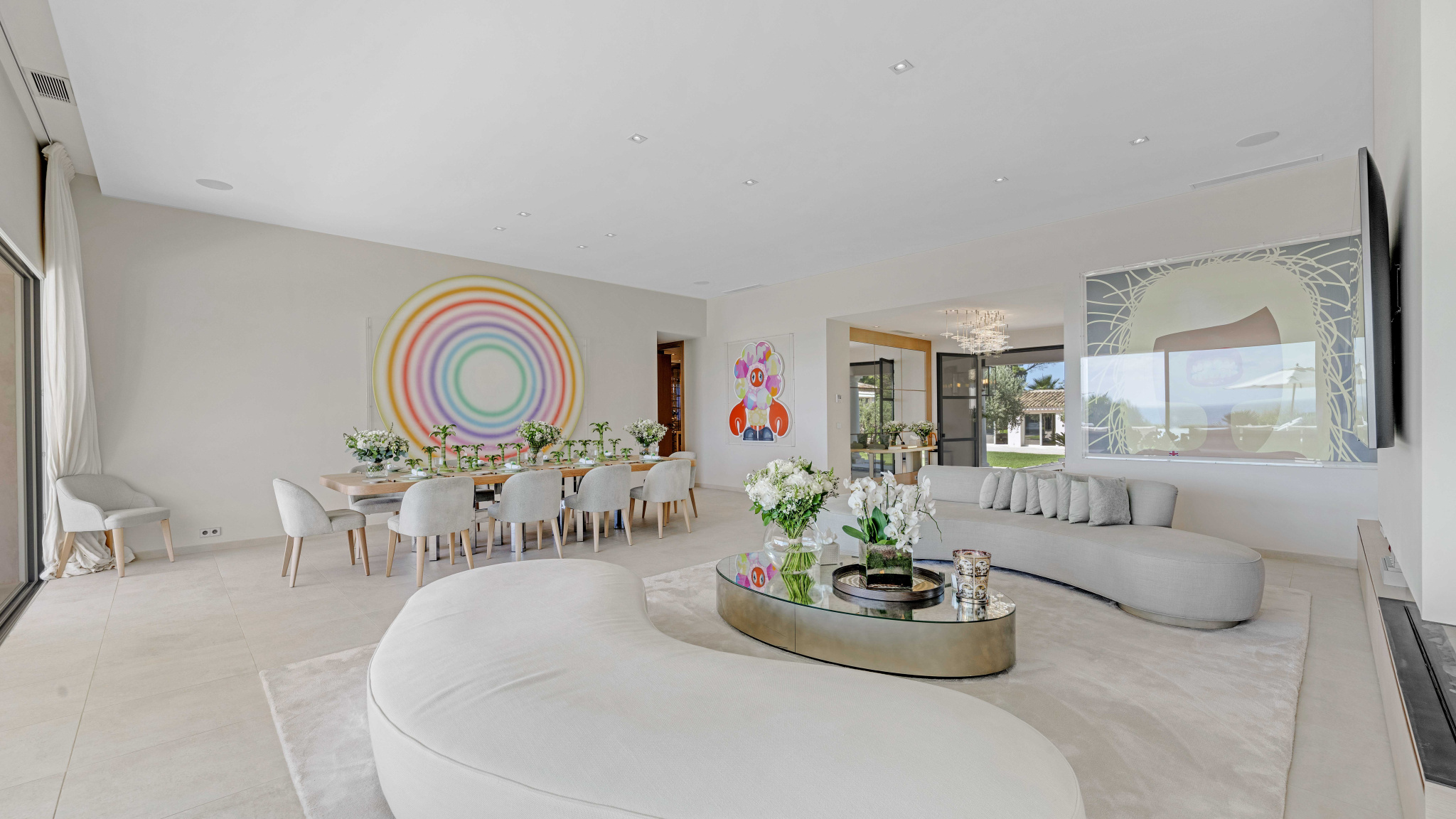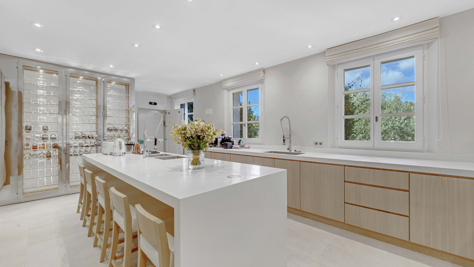 La propriété se compose de 12 pièces, dont 7 chambres avec salles de bains privatives et dressings, un vaste salon, une salle à manger ouvrant sur de larges terrasses, ainsi qu’une cuisine entièrement équipée accompagnée d’une cave à vins et d’une chambre froide.